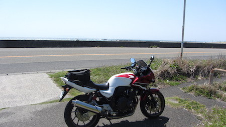 海岸線とCB400SBをパシャリ。おいおい海がちょとですね。